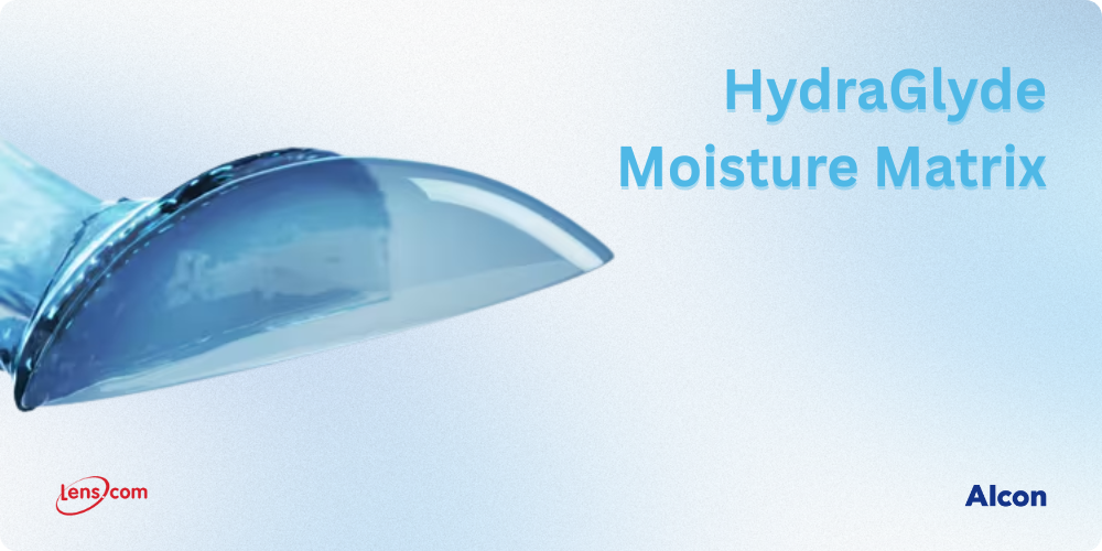 HydraGlyde Moisture Matrix, developed by Alcon, is a wetting agent that coats the surface of Air Optix contact lenses to attract and retain moisture throughout the day. Found in lenses like Air Optix plus HydraGlyde and Air Optix plus HydraGlyde Multifocal, it helps keep the lenses hydrated, reducing dryness and improving comfort for all-day wear. This moisture barrier is especially helpful for people with dry eyes or those who wear contacts for long hours, without needing extra rewetting drops.